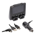 Instale rápida y fácilmente esta cámara de doble visión en el parabrisas para visualizar y grabar el área frontal e interior de su vehículo. Esta cámara de doble visión de alta resolución con DVR captura y muestra un campo de visión gran angular de 140° para proteger a los conductores y aumentar la seguridad. Cada lente puede orientarse hacia el parabrisas delantero para ver lo que hay delante del vehículo, o hacia el interior y la luneta trasera para capturar la vista directamente detrás. Ambos ángulos se pueden mostrar simultáneamente en la pantalla integrada de 3 pulgadas, ubicada sobre las dos lentes de la cámara. Esta cámara para salpicadero graba en 4K HD e incluye audio, que se puede almacenar en una tarjeta de memoria micro de hasta 128 GB.