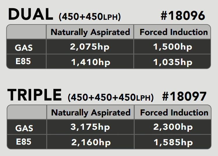 - Direct Drop-In Module – Utilizes OEM Tank, Lock Ring, and Gasket, Dual -08 ORB Outlet Ports (Main and Auxiliary), Requires the use of a Return Style Regulator (13134 or 13305) and High Flow Filters (12339 or 12341), Incorporates OEM Fuel Level Sender (Early or Late Model Level Sender Brackets Included), Utilizes OEM Jet Siphon and Pickup, Ground Shaking Performance – Advanced Technology