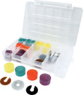 Kit makes it easy to start using bump stops. Includes a selection of 20 bump stop pucks ranging from 50 to 75 durometer, 8 backing washers and 16 packer shims in a simple plastic carrying case.