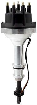 This high performance distributor is an excellent choice for many types of motorsports. Requires an aftermarket ignition box (such as an MSD, Accel, Crane or Mallory) and an external coil such as ALL81230. Housing is CNC-machined 6061-T6 aluminum with an upper support bearing and an extra-long lower bronze bushing for smooth operation and accurate timing at higher RPMs. Distributor includes a molded cap and rotor with brass and stainless steel contacts, a mechanical curve kit with advance springs and stop bushings, manifold gasket, housing O-rings, spark plug wire retainer cap with screws and instructions.