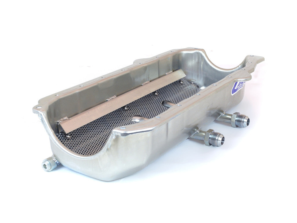 - Shallow competition dry sump pan for all pre-'85 small block Chevy engines