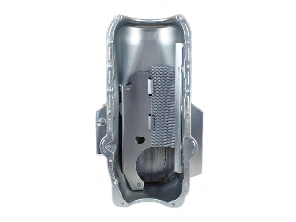 This SBC Corvette road race pan is for pre-80 blocks with left side dipstick. It is designed for 84-96 Corvettes, but will fit in early Corvettes as well. It has a 7" deep, 13-3/4" wide, 12" long sump, with a 7 quart system capacity. Will work with stock starters. This pan requires one of our pickups.