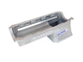 This BBC stock depth wide sump oil pan is for Mark IV big block Chevys. It is designed with a shallow front with angled corners to clear the large cross members in early Camaros and Novas and '68-'72 Chevelle. It has an 8" Deep, 12" Wide, 9-1/2" Long sump with a 7 quart system capacity. Due to the extra shallow front section of this pan designed for large cross member clearance our main cap mounted windage trays will not clear this pan. This pan requires our #20-170 pickup.