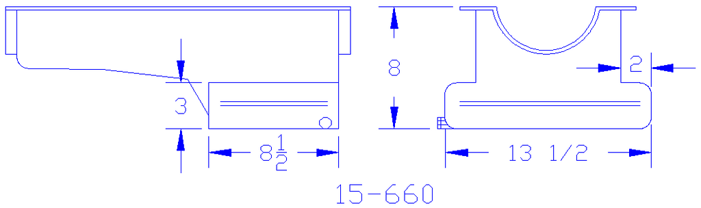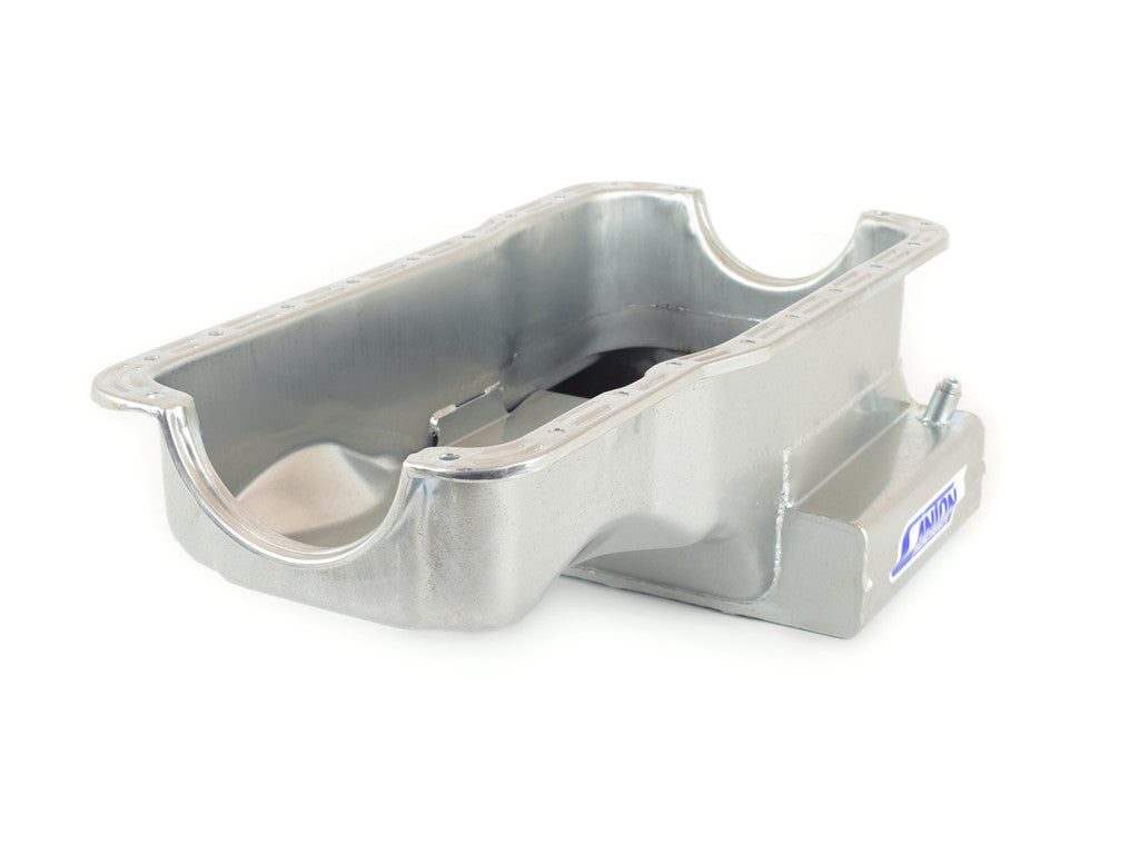 This front sump Ford 351W road race pan fits in most front sump production chassis except Mustang II, and Mavericks' and Comets which may require modification. It has an 8" deep by 13-1/2" wide sump, with a 7 qt. system capacity. This pan requires our 15-661 pickup for a Melling M83HV. Will work with stock & aftermarket Starters.