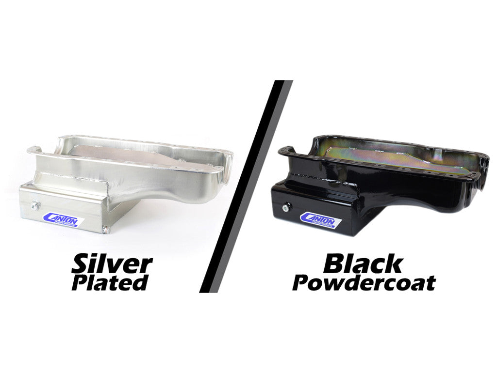 This front sump road race pan is for Ford 351 Windsor blocks. It has a 8 qt. system capacity, 8" deep, 12" wide, 14 ga. sump designed with 14 gauge steel for Cobra kit cars. Will work with stock & aftermarket starters. This pan requires our 15-661 pickup for Melling oil pumps M83HV/M10833.