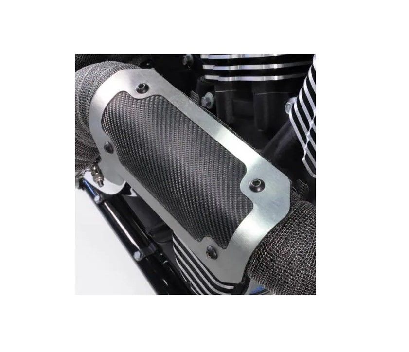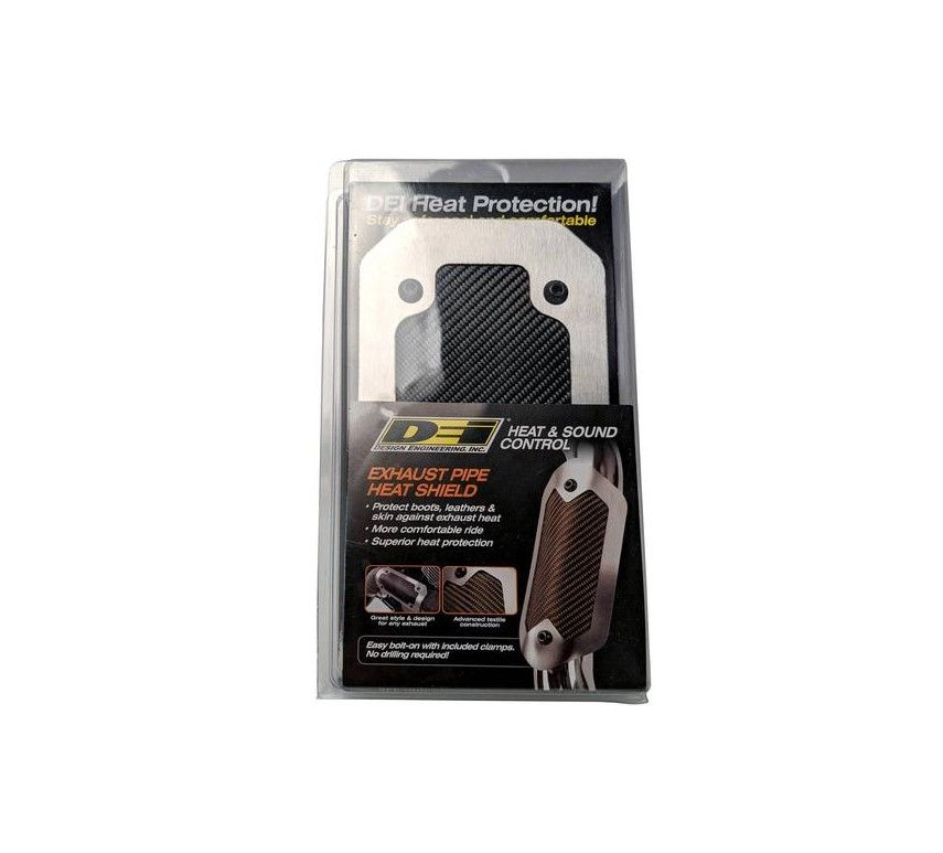 Pipe Shields solve the problem of needing spot heat protection for exhaust pipes and components. DEI has expanded its award winning Flexible Heat Shields to include additional sizes and premium finishes. The upgraded construction builds on the strengths of existing DEI Shields but adds more rigidity with a cleaner look. Being flexible, these shields can be adjusted to fit a range of diameters. They work great as OEM replacements, over exhaust wrap, or even doubling up existing metal heat shields for the ultimate protection. Each shield uses our reliable stainless standoff bracket and includes mounting hardware for easy installation. Current styles available include: Titanium(TM) Series (bronze with brushed trim), ONYX Series(TM) (black with brushed trim), and ONYX Series(TM) Double Black finish. These shields look the part on any motorcycle from cruisers to sport bikes. So if you are tired of burning your legs every time you stop in traffic, step out of the ordinary give our heat shield a try. Metal Trim Ring Blocks heat more effectively than stamped metal shields Semi-flexible material for easy fitment on almost any exhaust Great Protection for shorter riders Stainless Steel mounting hardware included, fits pipes up to 3.5 Inch Dual layer high-temperature textile materials
