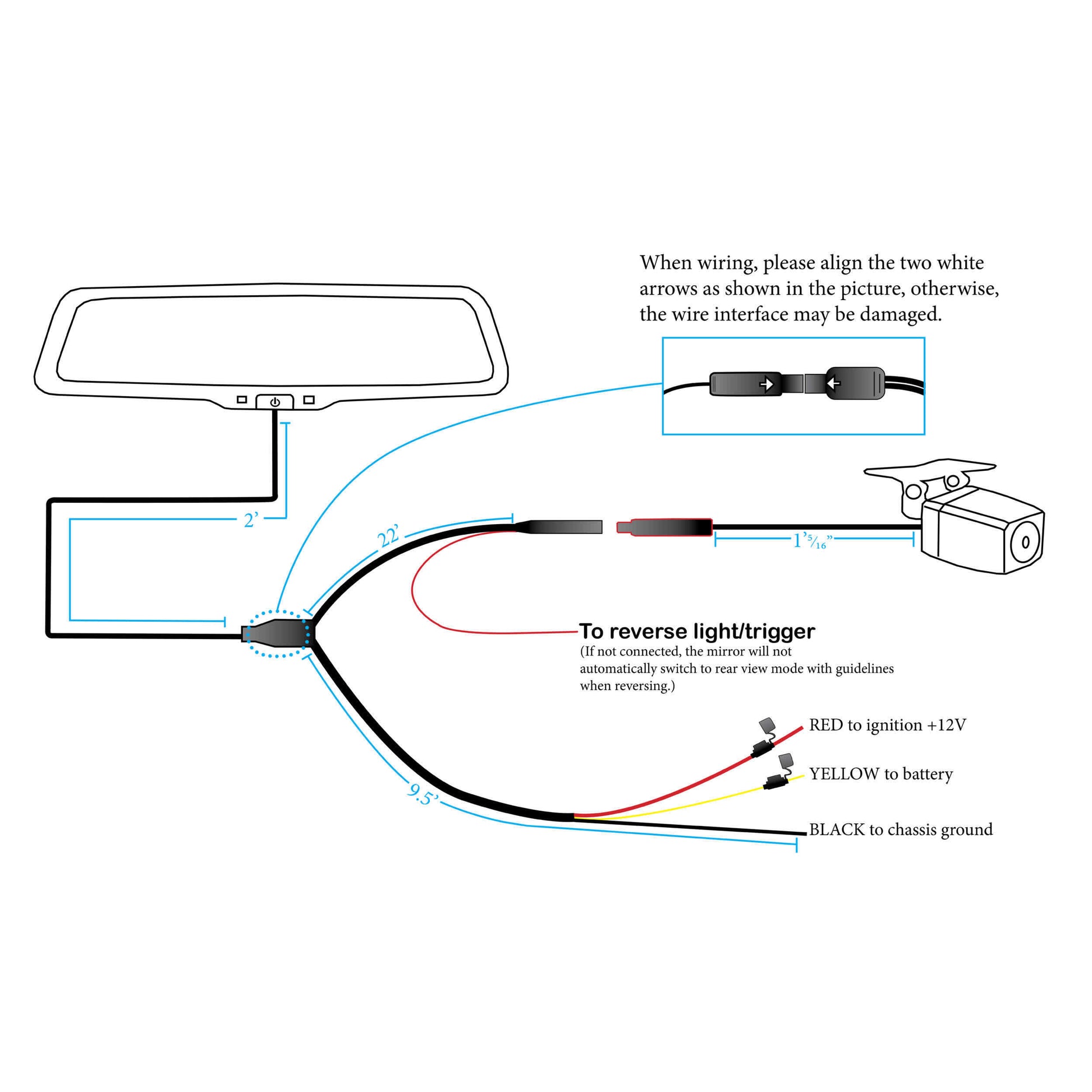 Note: For longer vehicle applications, the MPS-ECRGB72 can be used to extend the rearview camera cable. Our tests indicate that up to three extensions can be added to the rearview camera cable.