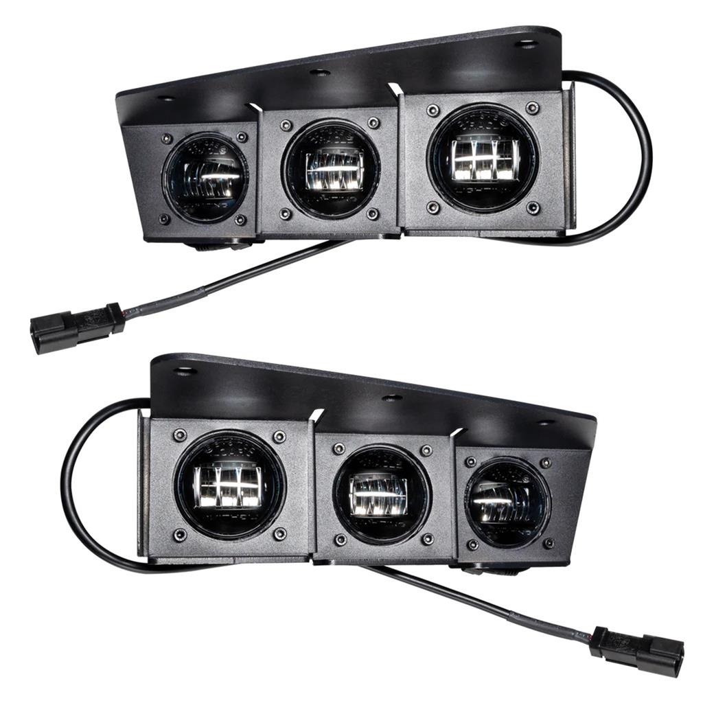 Quickly add functional forward-facing LED lighting to your vehicle to illuminate any adventure with Oracle Triple LED bumper fog lights. The six high-powered emitters provide significant visibility through advanced optics with a 6000 raw Lumen output and a precise no-glare design that avoids blinding other drivers. The powdercoat finish, blacked-out appearance, and IP68 waterproof rating offers a sleek look with superior durability to withstand any conditions. The simple bolt-on installation uses factory bolt locations and requires no drilling or modifications for the fog light kit. Typical installation time can be done in under 30 minutes and can be successfully installed using common hand tools by even the most casual enthusiast. Score first-class LED lighting that illuminates wherever your adventures take you with the Oracle Triple LED bumper fog light kit!