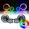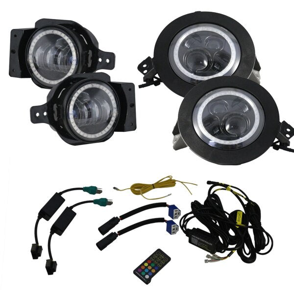 Racesport RS9JL4 2018+ Jeep JL 9 inch Adapted Headlight and 4 inch Foglight ColorSMART Combo Complete RGB Multi-Color kit - Smartphone Controlled with (2) Headlights and (2) Foglights