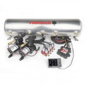 - RidePro 4-way valve block, dual Thomas 319 compressors, aluminum 5 gallon tank, 1/4″ airlines and fittings.