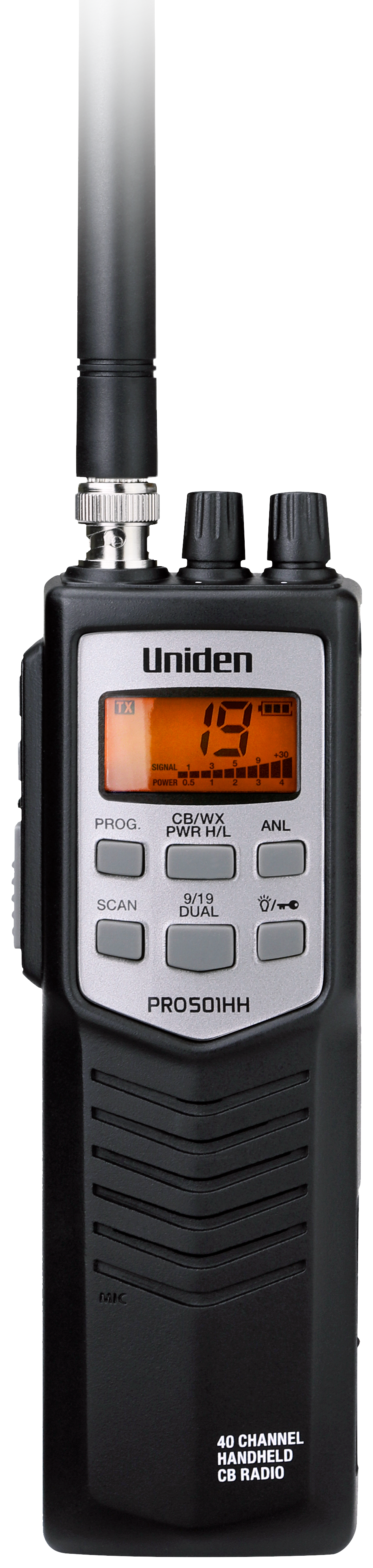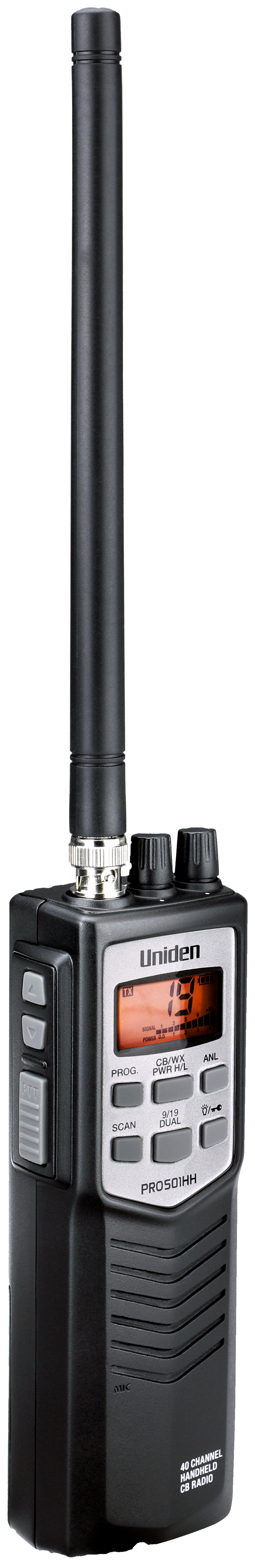 - The Uniden Pro-Series PRO501HH compact handheld CB radio offers high-performance full 40-Channel CB operation and 10 weather channels in a compact rugged handheld design
